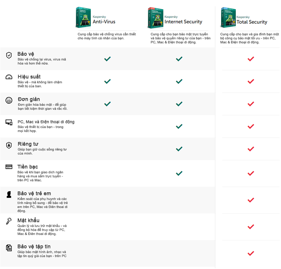 Bảo vệ quyền riêng tư, tiền bạc & con cái của bạn khỏi rủi ro trên Internet – Bảo vệ máy tính của bạn khỏi các mối đe dọa trên Internet ngày nay – Tăng tính bảo mật giao dịch ngân hàng & mua sắm trực tuyến – Bảo vệ quyền riêng tư và thông tin cá nhân của bạn – Giúp bảo vệ con cái của bạn khỏi các mối đe dọa trực tuyến – Kết hợp bảo mật cao cấp & hiệu suất tối ưu