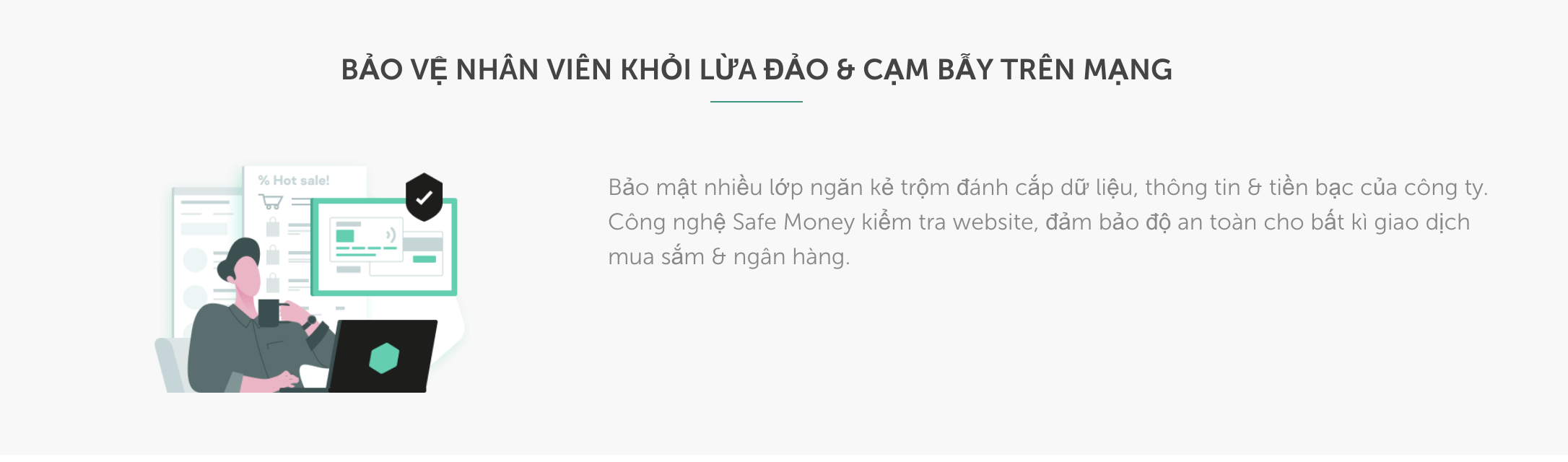 Là chủ doanh nghiệp nhỏ, bạn phải đối mặt với nhiều thách thức về bảo mật: bảo vệ dữ liệu của chính mình, của doanh nghiệp và khách hàng nhưng lại gặp hạn chế về thời gian, nguồn lực và chuyên môn kỹ thuật. Chỉ cần một giải pháp duy nhất giúp bạn đối mặt với thách thức này: giải pháp bảo mật đẳng cấp thế giới được cài đặt một cách nhanh chóng và dễ dàng sử dụng. Trong hộp bản quyền này là tất cả các công cụ bảo mật mà bạn cần và nhiều tính năng bảo vệ cao cấp khác. Bạn có thể tin tưởng vào kaspersky Small Office Security để bảo mật hệ thống mạng doanh nghiệp bạn.