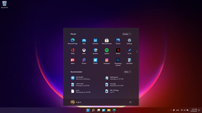 Điểm thay đổi đầu tiên sẽ khiến bạn ấn tượng là thanh công cụ Taskbar. Thanh Taskbar đã được căn giữa màn hình với icon đã được làm bo tròn. Giao diện Start Menu cũng được làm đơn giản hơn với những ứng dụng thường xuyên sử dụng để bạn có thể truy cập nhanh. Những điều này sẽ giúp bạn có trải nghiệm như giao diện của MAC trên hệ điều hành Windows vậy.