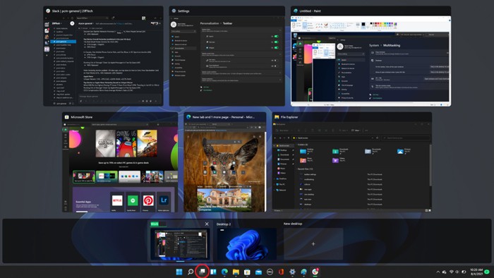 Với Windows 11, Microsoft thiết kế lại màn hình Task View với các quyền mới cho Desktop ảo. Với Windows 11, bạn có thể đổi tên, sắp xếp lại và tùy chỉnh nền cho từng desktop ảo.