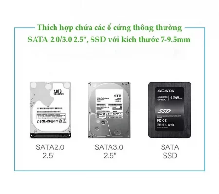 - Hộp được thiết kế dạng trượt nắp ốp lưng, nhanh chóng dễ dàng mở và thay thế ổ cứng khác chỉ với 3 bước đơn giản