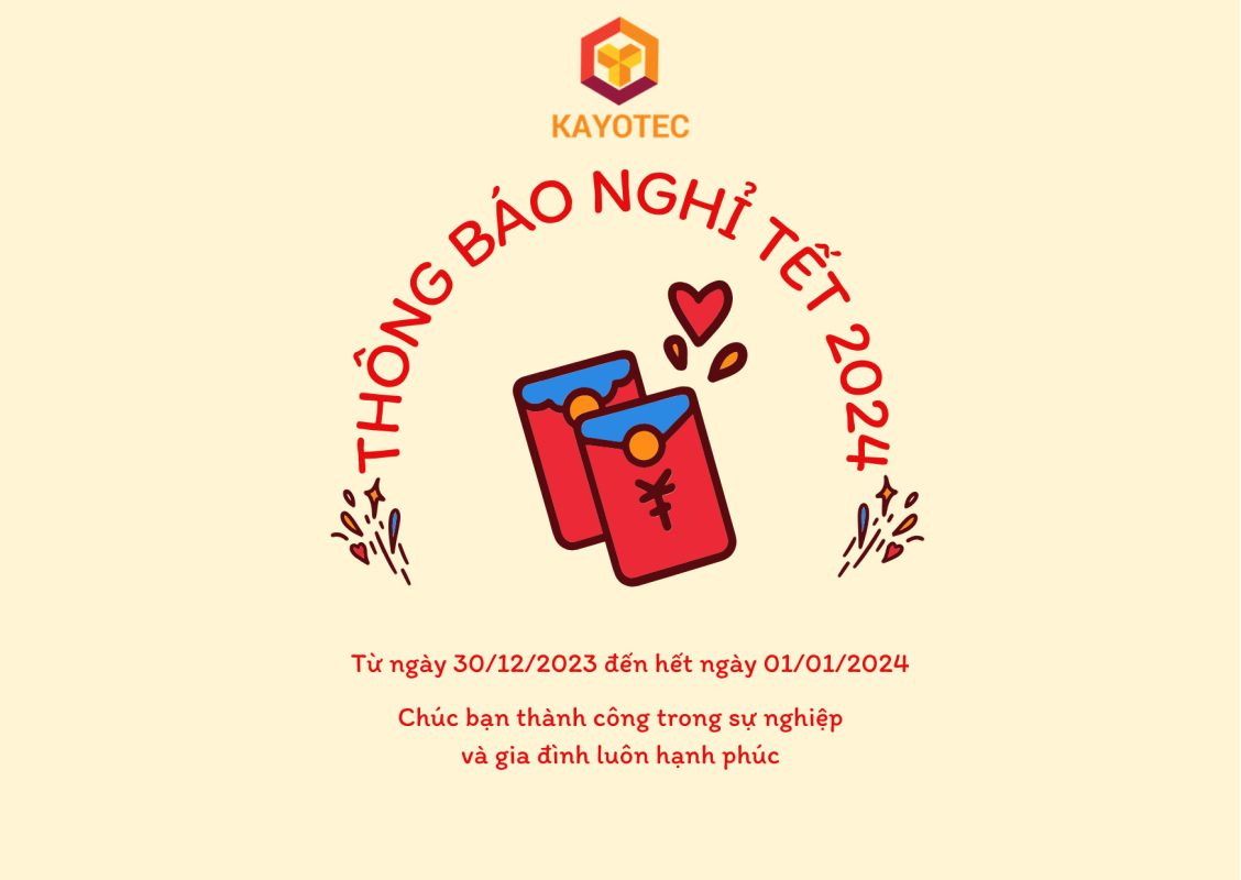 Để tiện cho việc giao dịch, KAYOTEC xin thông báo lịch nghỉ làm việc trong thời gian nghỉ tết dương lịch 2024 tới Quý khách hàng được biết như sau: