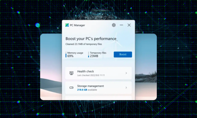 Microsoft PC Manager là phần mềm tiện ích miễn phí dành cho PC cung cấp nhiều tính năng, bao gồm tối ưu hóa hệ thống, bảo mật, quản lý lưu trữ và chẩn đoán hệ thống.